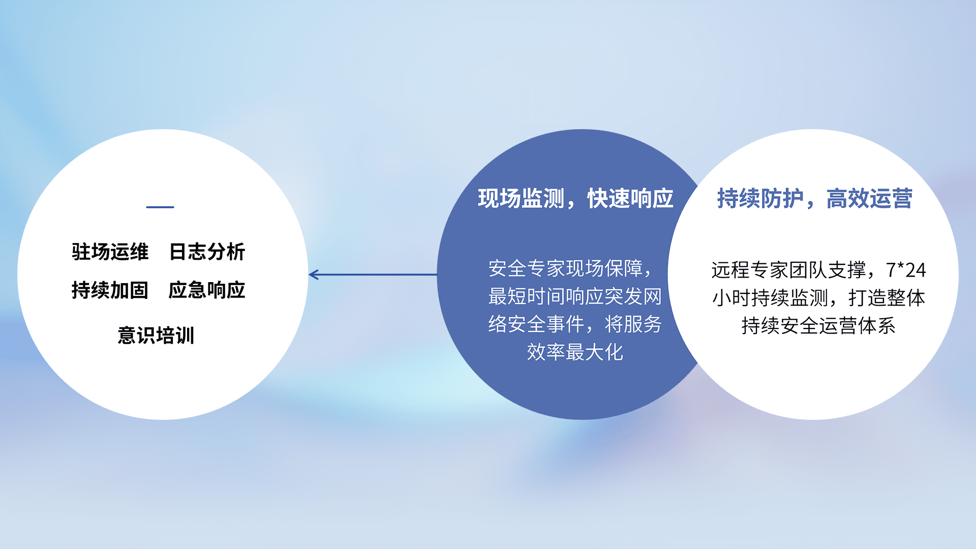 7X24小时持续监测安全事件,保持安全策略有效性,降低资产脆弱性风险,,精准拦截黑客攻击,,,减少被黑客利用的机会,,,第一时间遏制,,,降低损失。。。。
